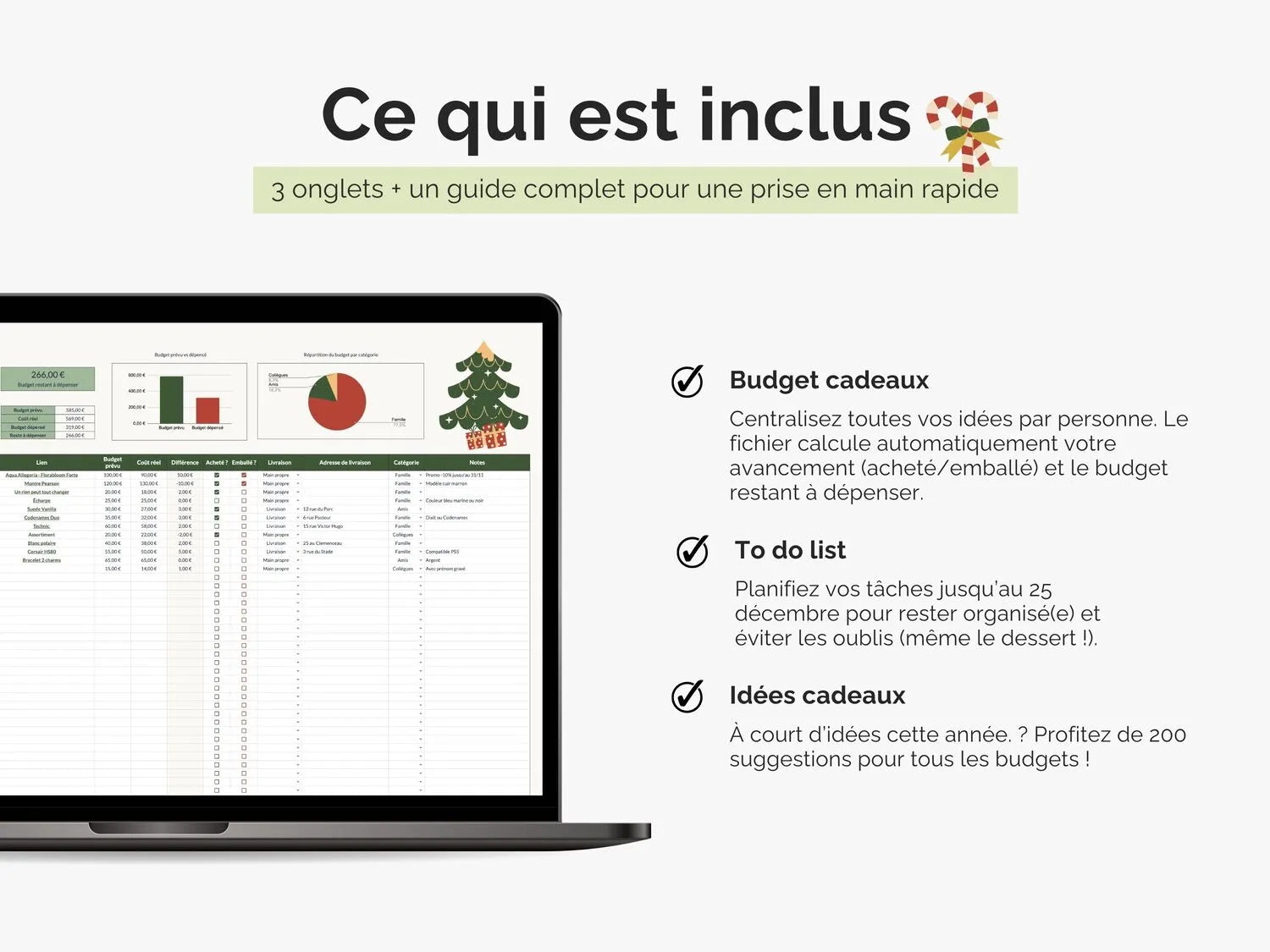 Fini le stress de derniÚre minute et les dépassements de budget. Grùce à ce planificateur complet, vous organisez vos cadeaux, vos dépenses et vos tùches en toute simplicité.