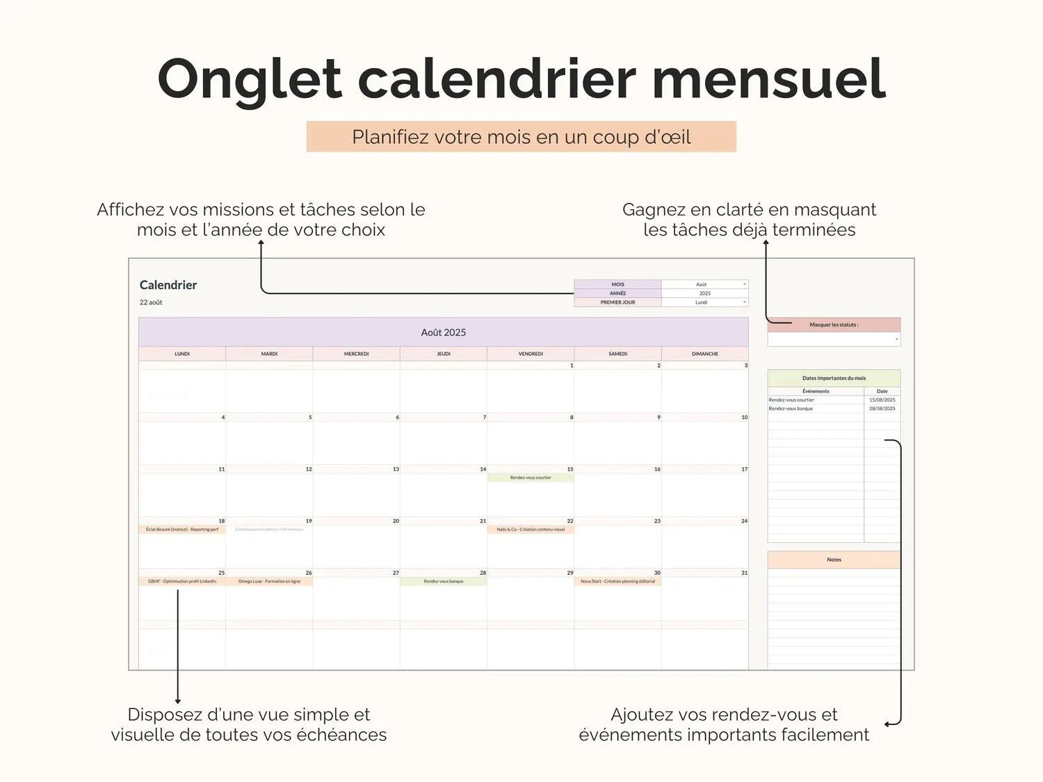 - Calendrier dynamique pour visualiser vos échéances
