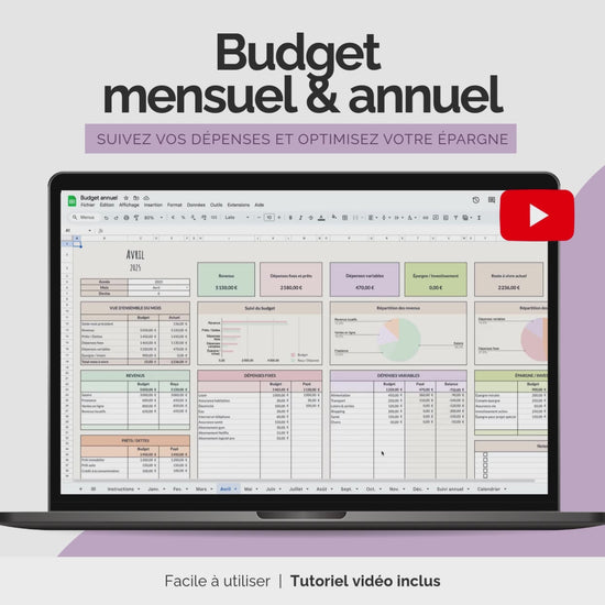 - Un tableau budget mensuel et annuel complet sur Google sheets et Excel avec plusieurs onglets dédiés