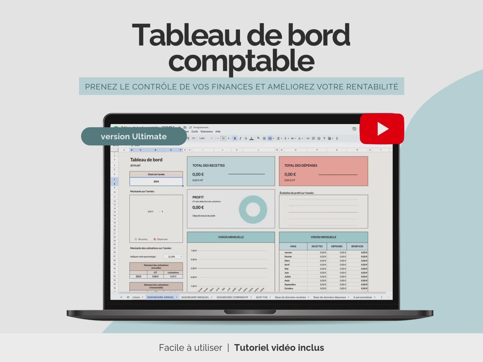 Ne laissez plus vos finances au hasard ! Téléchargez la version Ultimate du tableau de bord comptable et commencez à maîtriser vos recettes et dépenses pour garantir la rentabilité de votre activité.